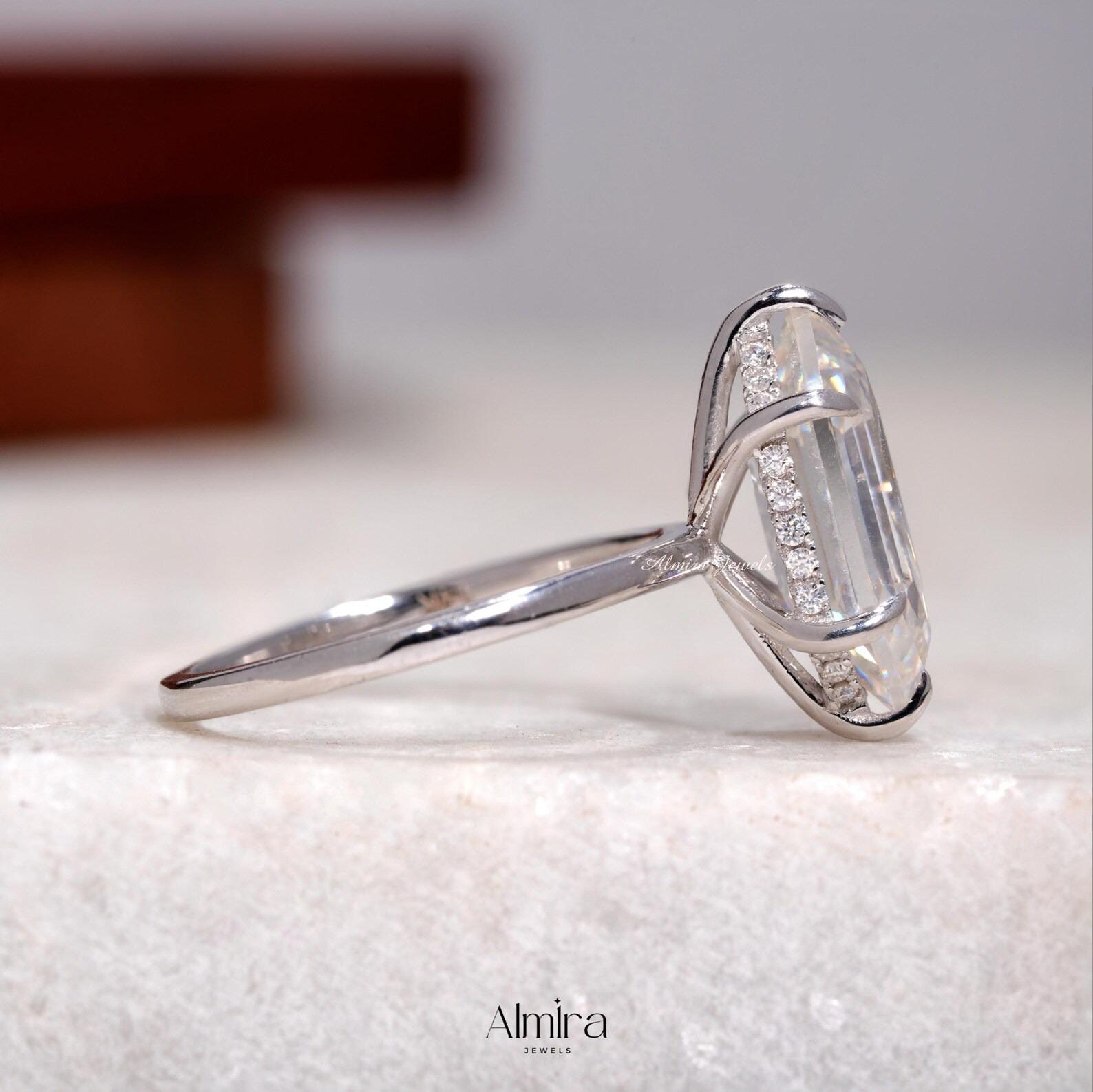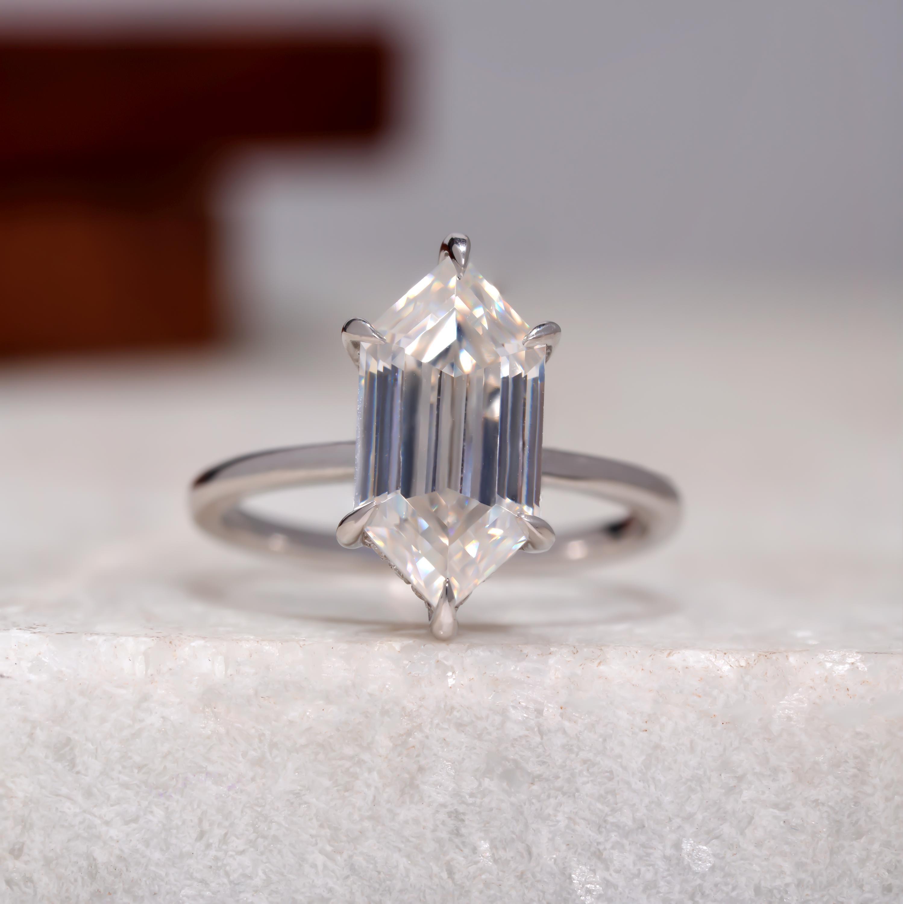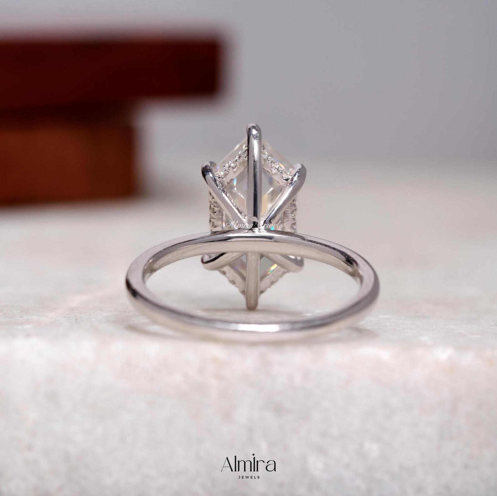 5 CT Dutch Marquise Step Cut Moissanite Engagement Ring, Hexagon Cut Colorless Moissanite Hidden Halo Wedding Ring Claw Prong Solitaire Ring