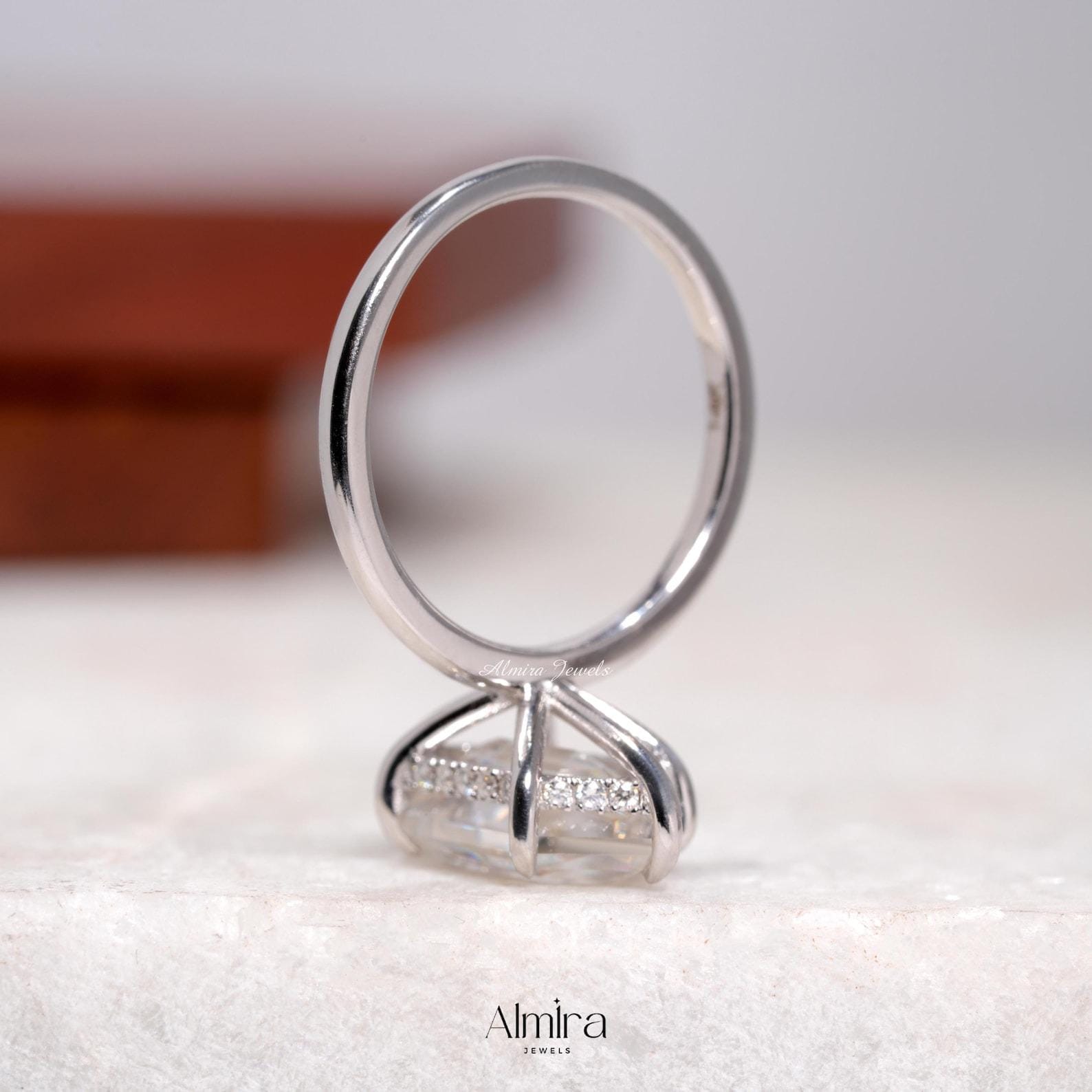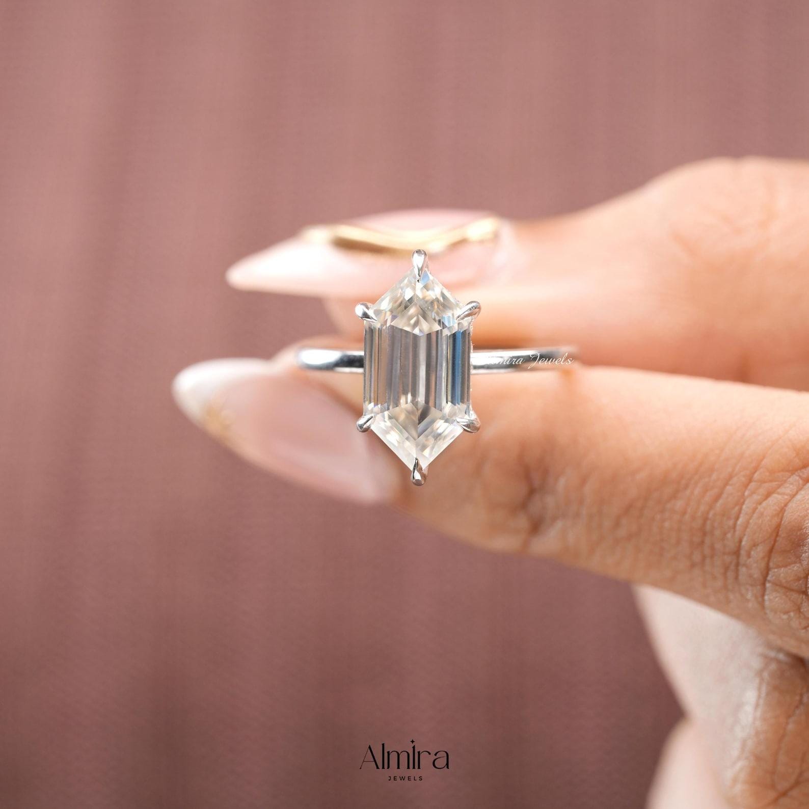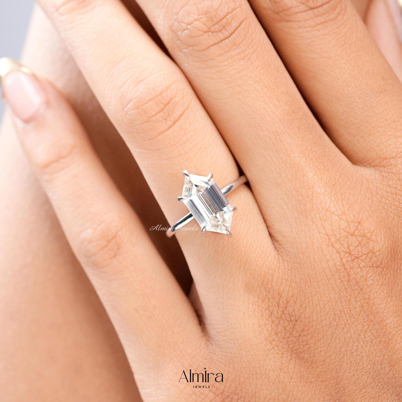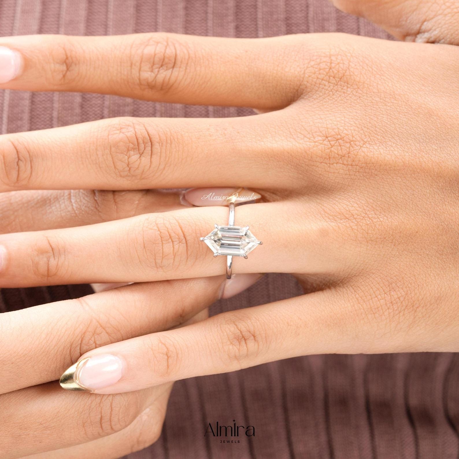 5 CT Dutch Marquise Step Cut Moissanite Engagement Ring, Hexagon Cut Colorless Moissanite Hidden Halo Wedding Ring Claw Prong Solitaire Ring