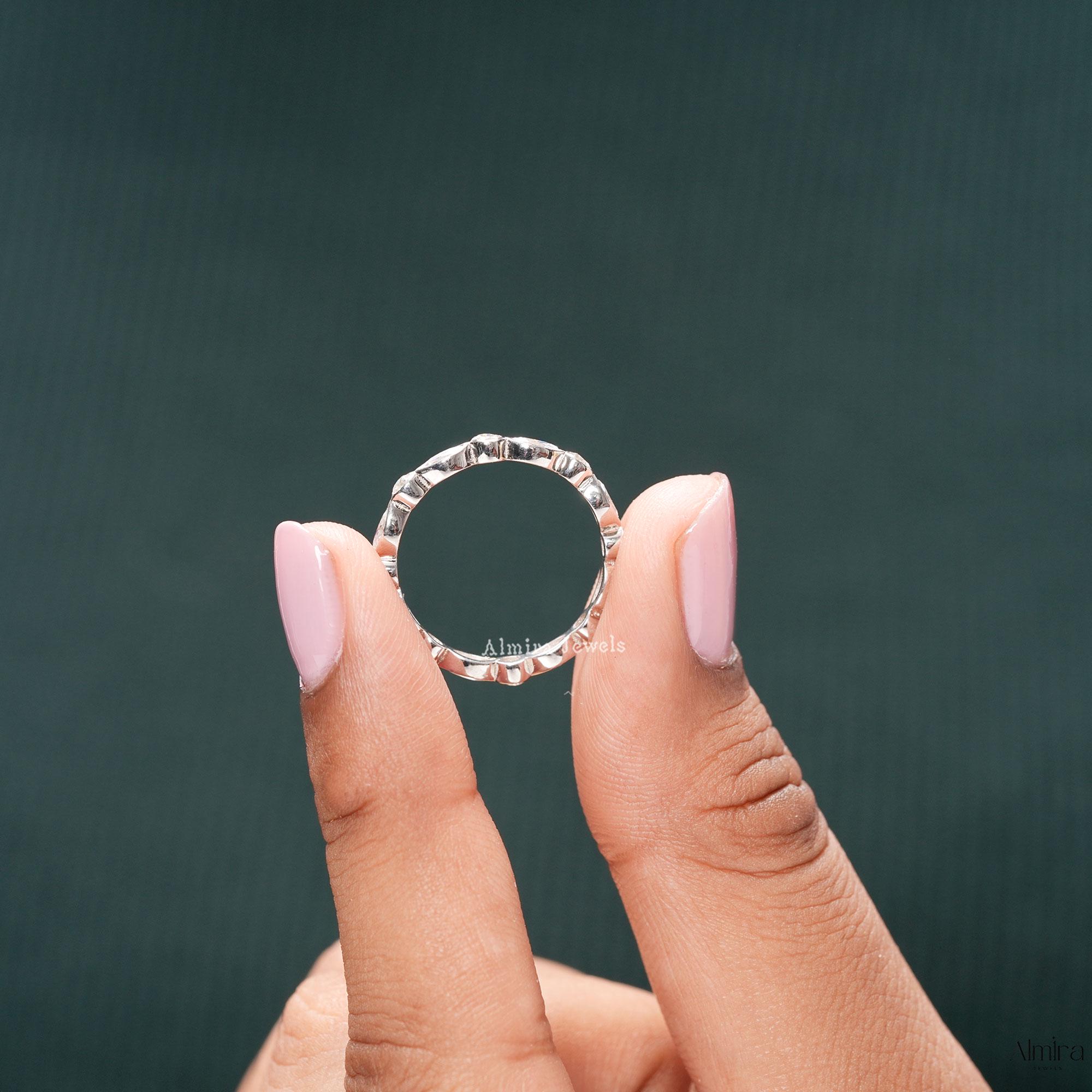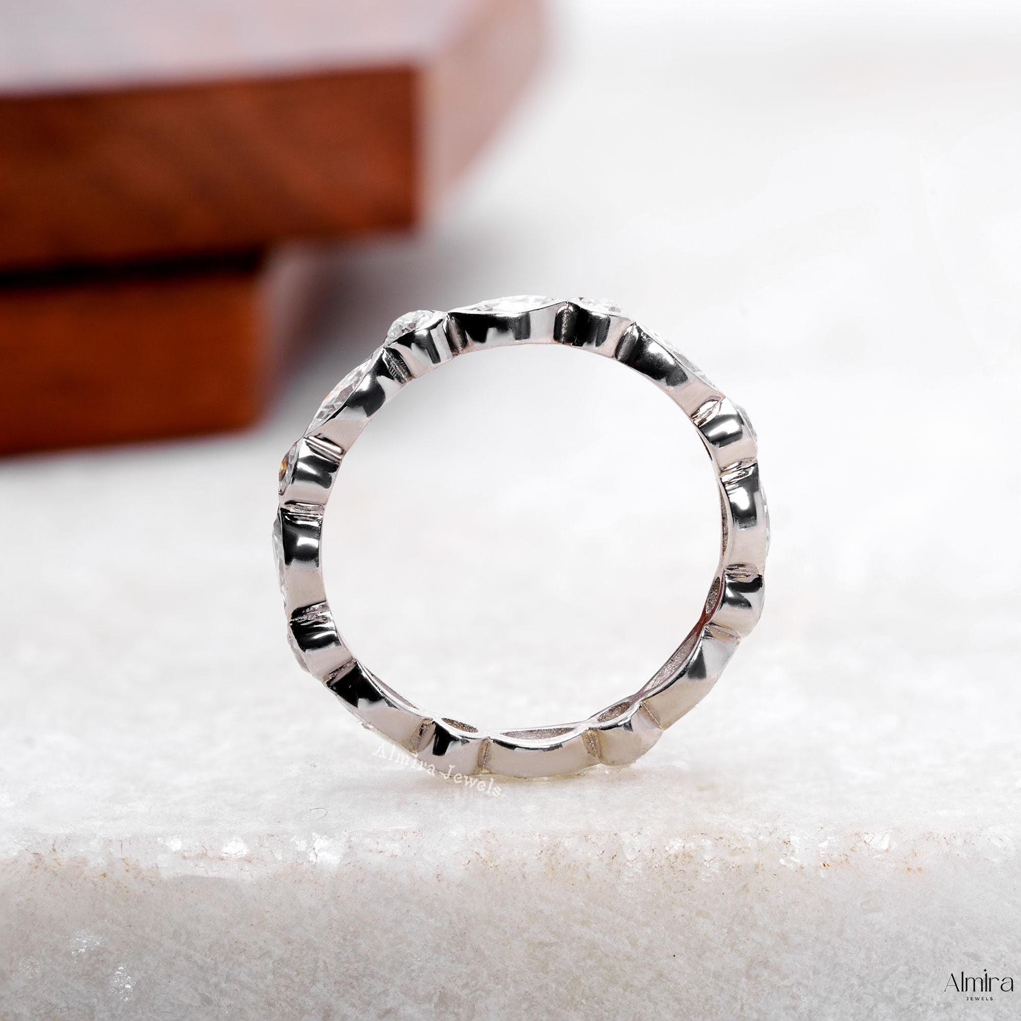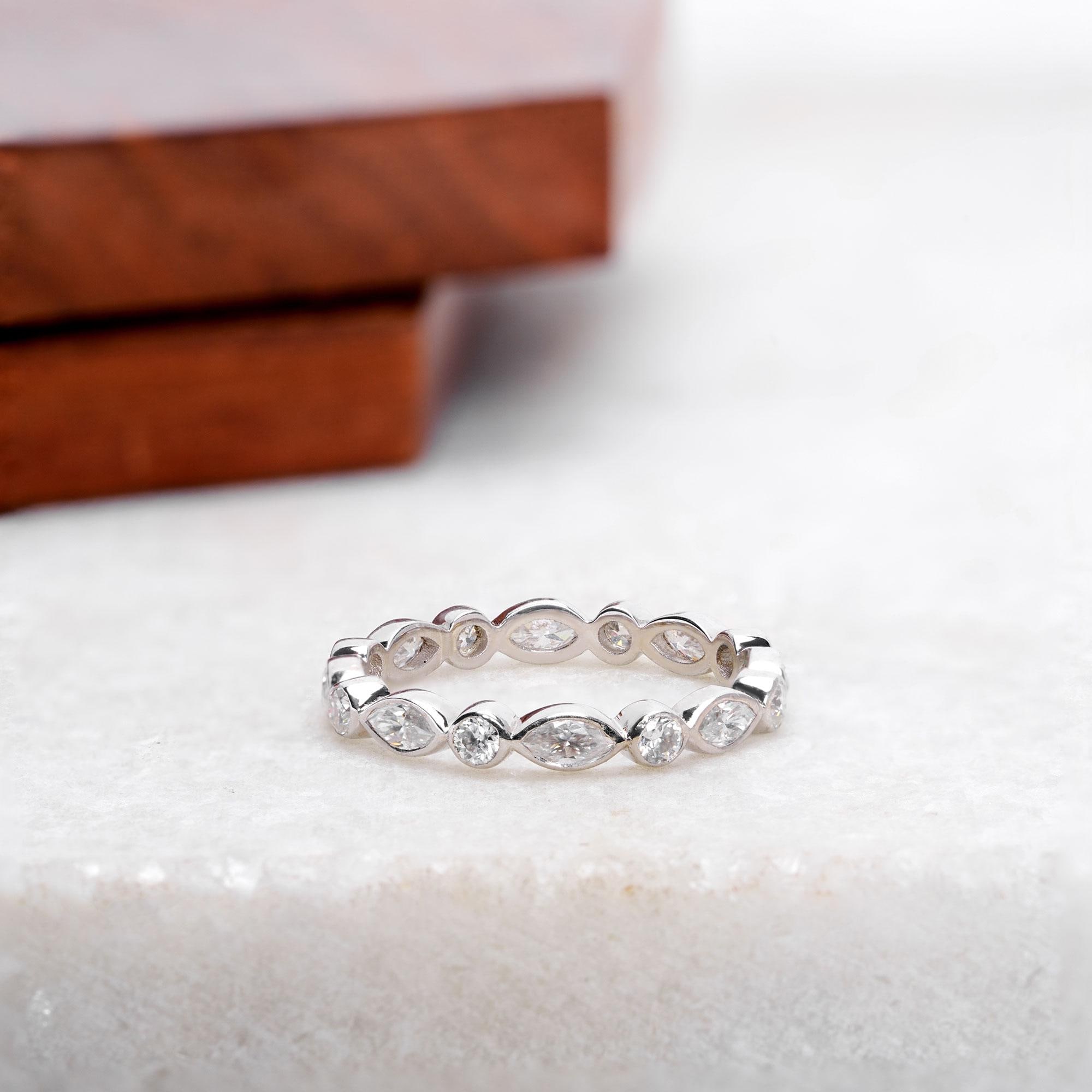 Alternative Marquise and Round Cut Bezel Set Moissanite Wedding Band, Full Eternity Minimalist Diamond Band, Stacking Anniversary Gift Band