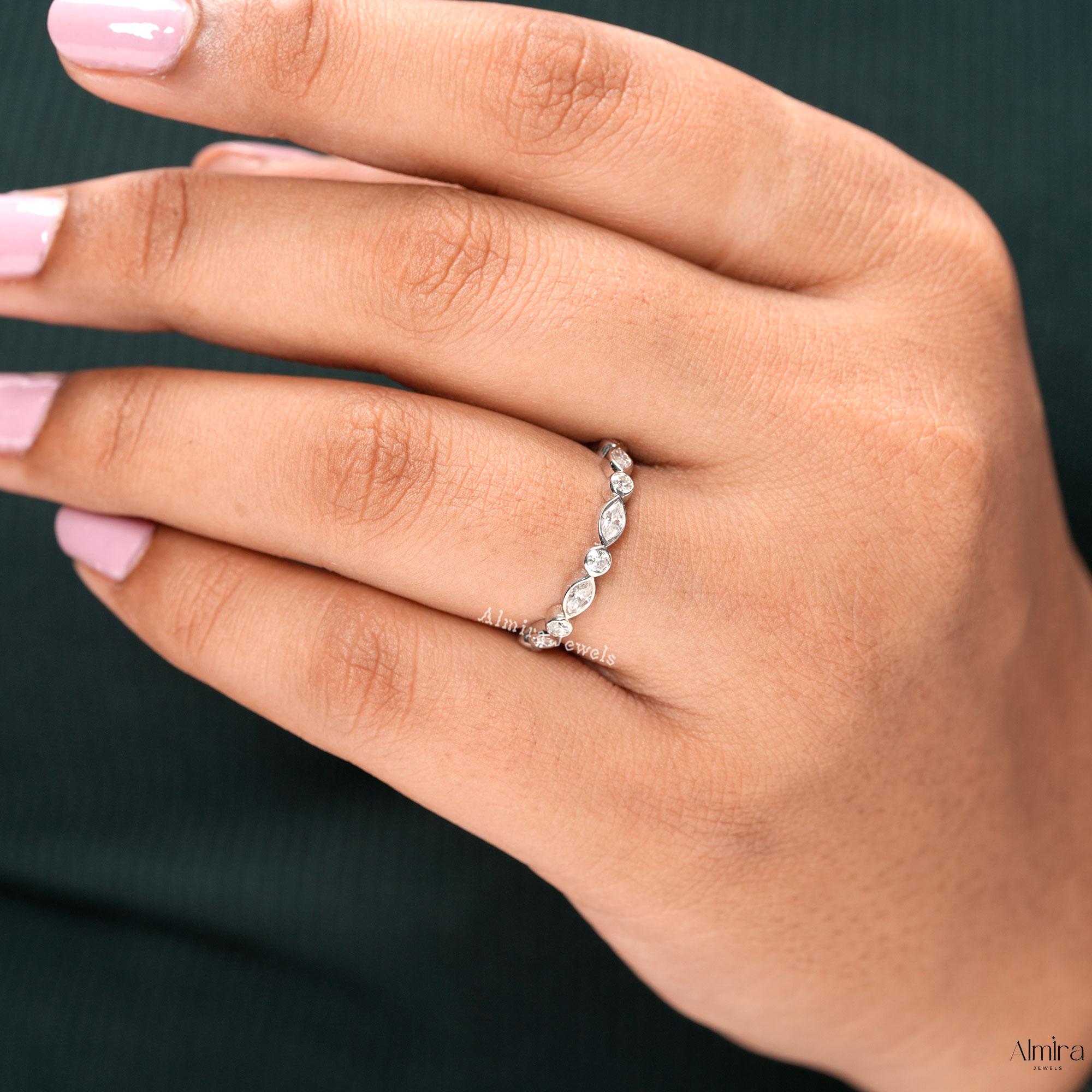 Moissanite Full Eternity Wedding Band, Solid Gold Bezel Set Band, Alternative Marquise and Round Moissanite Band, Anniversary Gift Band, Thin Moissanite Wedding Band, Alternative Marquise and Round Cut Bezel Set Moissanite Wedding Band, Gold Wedding Band, Moissanite Wedding Band, Full Eternity Minimalist Bridal Band, Stacking Anniversary Gift Band, Anniversary Gift Band For Her, Bridal Band, Matching Band, Minimalist Band, Marquise Moissanite Band, Marquise Engagement Band, Bezel Moissanite Band, Bezel Set Engagement Band, Bezel Set Engagement Band.